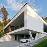 Completed in 2025 by ArchLAB, the Green Terrace House is a masterclass in precision, proportion, and integration with its forested hillside site. The design’s most striking gesture is the cantilever, projecting the main living volume over the driveway and resting on two angled concrete supports. This bold structural move not only shelters the entrance and […]